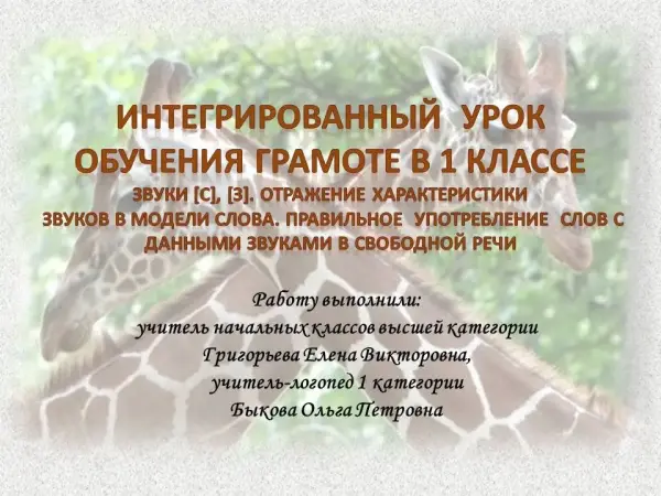 Интегрированный урок обучения грамоте по теме «Звуки [с], [з]. Отражение характеристики звуков в слове». 1-й класс