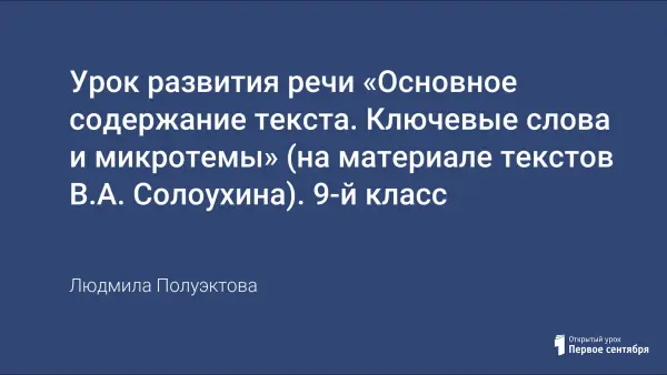 Произведения В.А. Солоухина содержательны, полезны и лаконичны. На занятии развиваются и закрепляются умения учащихся сокращать текст. Материалы урока совершенствуют практические умения обработки текста, необходимые для создания сжатого изложения. Лексическая работа пополняет словарный запас учеников, расширяет кругозор.