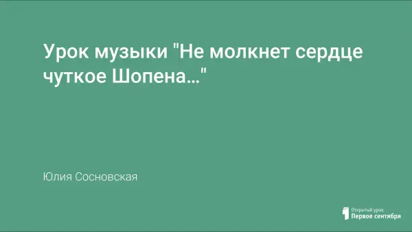 Урок музыки в 4-м классе, цель которого: осознание творчества Ф.Шопена. В ходе урока ученики самостоятельно применяют ранее полученные знания; учатся выявлять особенности музыкального языка и стиля композитора; знакомятся с музыкальными произведениями разных жанров: полонез, мазурка. Урок способствует расширению речевых возможностей о содержании музыки; воспитанию эмоционально-целостного отношения к музыке.