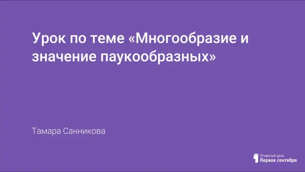 Второй урок по классам паукообразных. Заранее распределяется работа в группах по количеству отрядов: скорпионы, клещи, сенокосцы и пауки. Учащиеся готовят презентации по плану и выступают с сообщениями перед одноклассниками. Базовые технологии на уроке: личностно-деятельностная; развитие критического мышления; формирование коммуникативных действий; активная рефлексивная деятельность.