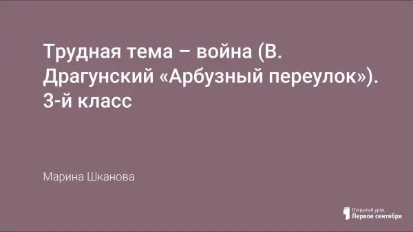 Урок знакомит с произведением В. Драгунского «Арбузный переулок». Цель: анализировать рассказ, расширять литературоведческий словарь, раскрыть воспитательную идею автора, заключённую в рассказе, показать особенности композиции произведения, отметить настроение автора, с которым показывает он войну глазами ребенка.