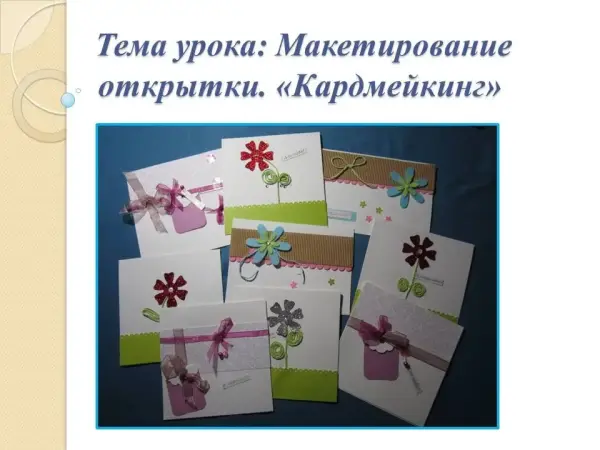 Понятие «кардмейкинг» в переводе с английского языка означает: card – открытка, make – делать, то есть изготовление открыток своими руками. Слово «кардмейкинг» происходит с английского языка, но техника изготовления открыток своими руками зародилась еще в Древнем Китае. А в 1400 году первая открытка попала в Европу и стала очень популярной. До середины девятнадцатого века люди во всех уголках Европы поздравляли друг друга с праздниками именно самодельными открытками. Потом появились различные печатные устройства, но открытки, сделанные своими руками, по-прежнему остаются самыми востребованными.