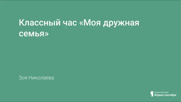 Классный час предназначен для учащихся 3-го класса. Это мероприятие проводится с целью воспитания у детей духовных потребностей уважения к окружающим людям, чуткого отношения к членам своей семьи, к старшему поколению. Во время классного часа ребята читают стихи, поют и слушают песни о семье, танцуют, вспоминают пословицы и поговорки, участвуют в различных конкурсах и играх.