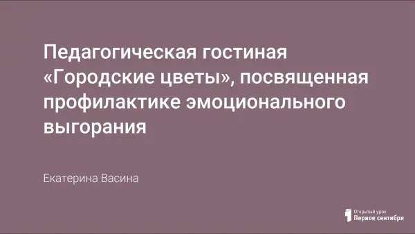 Изменения в системе образования, требующие психологической гибкости, высокие нагрузки, возрастающие требования к педагогам накапливают стрессовые состояния, отрицательные эмоции. Цель: познакомить с маленькой частичкой возможностей цветочной терапии в профилактике эмоционального выгорания педагогов.