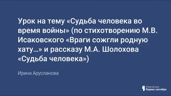 В ходе урока предлагается провести сопоставительный анализ стихотворения М.В. Исаковского «Враги сожгли родную хату…» и рассказа М.А. Шолохова «Судьба человека».