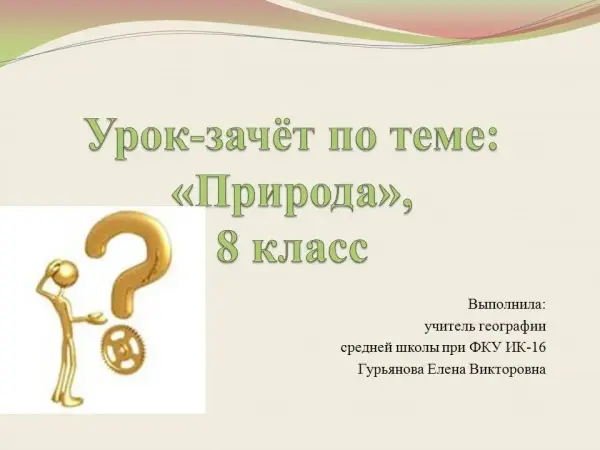 Цель урока: обобщить, повторить и закрепить знания по теме «Природа»; знать основные формы рельефа их связь со строением земной коры, особенности климата России, морей, рек и озер, размещение основных типов почв, примеры использования и значения в жизни людей.
