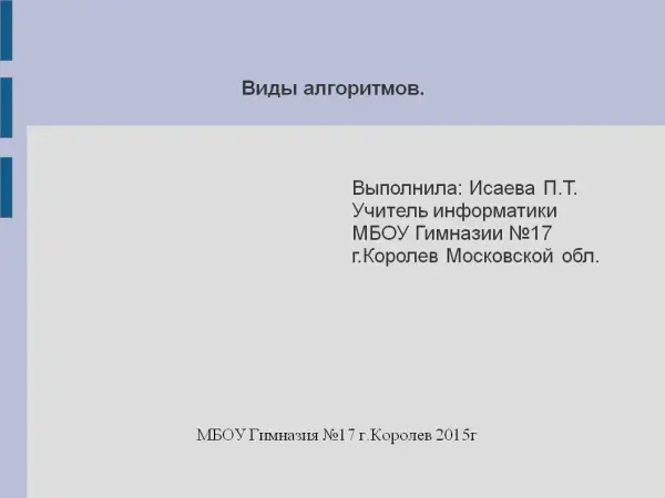 В ходе урока учащиеся знакомятся с основными видами алгоритмов: линейным, разветвляющимся и циклическим.