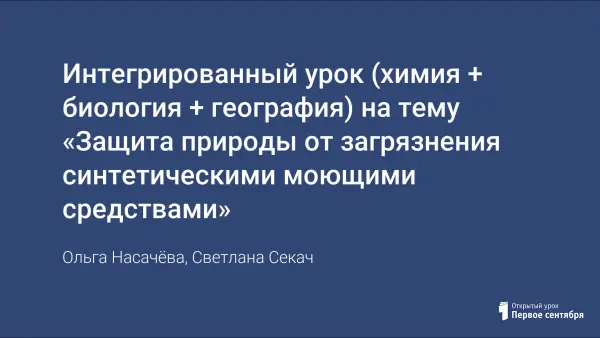 Интегрированный урок (химия + биология + география) на тему «Защита природы от загрязнения синтетическими моющими средствами»
