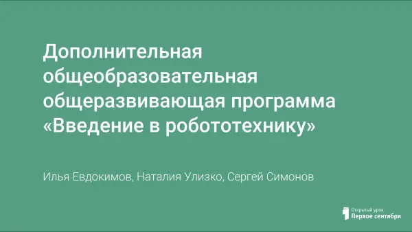 В статье представлена дополнительная общеобразовательная общеразвивающая программа технической направленности стартового уровня, рассчитанная на 72 часа в течении 1 года, реализуемая на базе МАОУДО Центр «Диалог» для обучающихся 11–12 лет. Особое внимание в программе уделяется конструированию, исследованию, постановке вопросов и совместному творчеству.