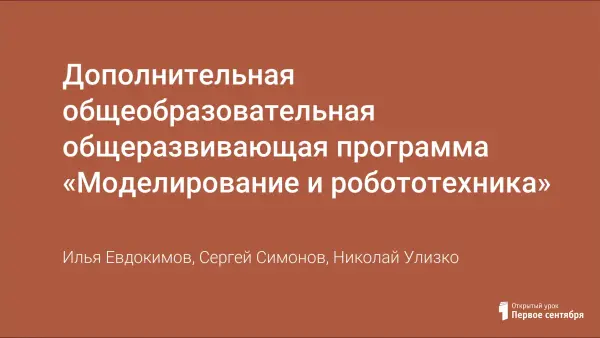В статье представлена дополнительная общеобразовательная общеразвивающая программа технической направленности стартового уровня, рассчитанная на 60 часов в течении 1 года, реализуемая на базе МАОУДО Центр «Диалог» для обучающихся 11–13 лет. Процесс обучения строится на основе активной работы по конструированию и исследованию, знакомит обучающихся с элементами мехатроники. Цель курса: познакомить обучающихся с основами механики и программирования на примере действующих моделей, используемых в повседневной жизни.