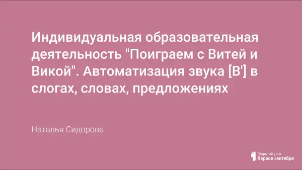 Цель занятия: закрепление у ребёнка представлений о правильной артикуляции звука [В'] в слогах, словах и словосочетаниях.