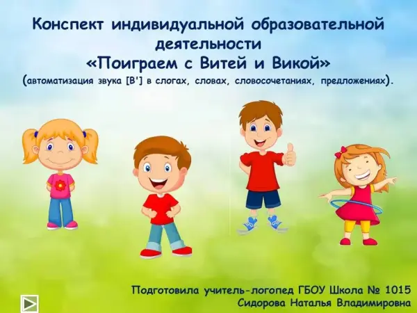 Индивидуальная образовательная деятельность "Поиграем с Витей и Викой". Автоматизация звука [В'] в слогах, словах, предложениях