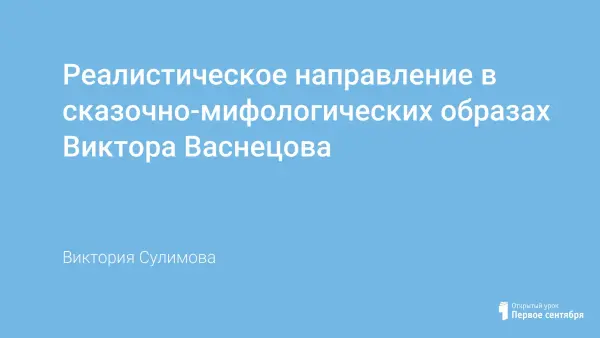 Цель занятия: научиться выделять признаки реалистического направления в сказочно-былинных произведениях В.М. Васнецова.