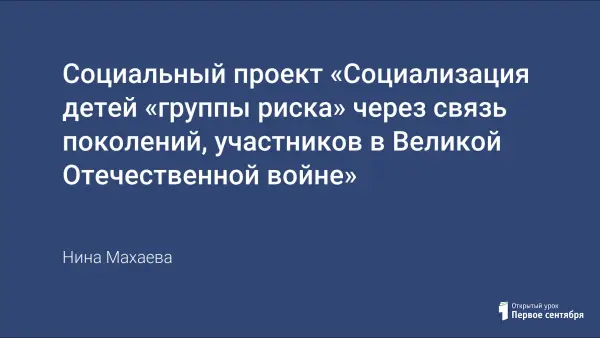 Социальный проект «Социализация детей «группы риска» через связь поколений, участников в Великой Отечественной войне»