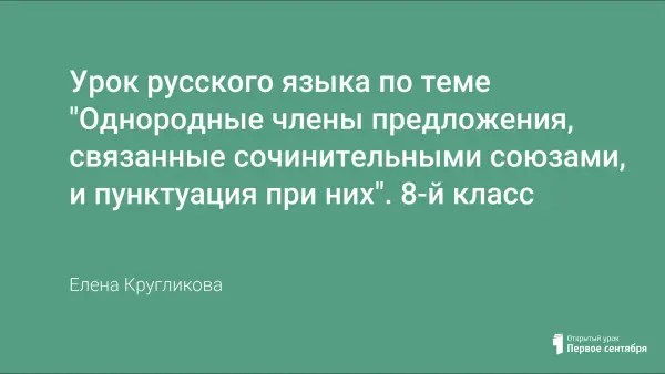 Урок ориентирован на закрепление умения определять однородные члены предложения, разделять их на письме запятыми, в устной речи – интонацией; конструировать схемы и предложения с однородными членами. Учащиеся систематизируют знания о сочинительных союзах, соединяющих однородные члены, а также развивают навыки монологической речи. Урок содержит разнообразный материал для систематизации и проверки знаний по теме.