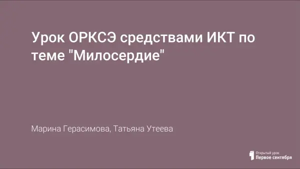 Данная работа является разработкой урока ОРГСЭ модуля «Основы мировых религиозных культур» по теме «Милосердие» средствами информационно-компьютерных технологий. Урок способствует формированию ценностного отношения к окружающему миру, пониманию и осознанию учащимися нравственной ценности «милосердия».