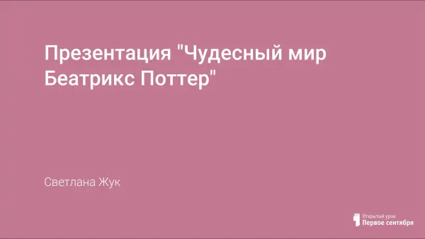 Статья представляет собой презентацию, рассказывающую об английской писательнице и художнице Беатрикс Поттер. В презентации использованы материалы музея Б.Поттер в Озерном краю.