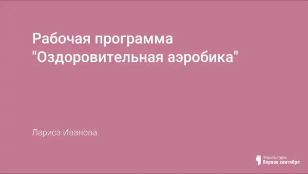 В основу программы положены нормативные требования по физической и спортивно-технической подготовке, научные и методические разработки по аэробике отечественных и зарубежных тренеров и специалистов, применяемые в последние годы. Программа содержит научно обоснованные рекомендации по структуре и организации учебно-тренировочного процесса на различных этапах многолетней подготовки. Цель программы: укрепление здоровья и повышение работоспособности; разностороннее развитие физических качеств.