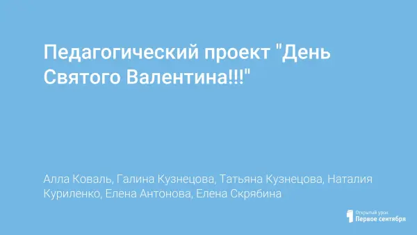 Педагогический проект «День Святого Валентина!!!» предназначен для детей старшего дошкольного возраста. Проект: творческий, игровой, групповой, краткосрочный. Основные цели проекта: познакомить детей с историей возникновения праздника и традициями его проведения; воспитывать любовь к своим близким и желание доставить им радость.