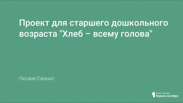 Предлагаемый проект рассчитан на дошкольный возраст. Вместе с детьми старшей группы я решила проследить весь путь хлеба: от зернышка до нашего стола, увидеть разнообразие хлебобулочной продукции. Основным методом является проектная деятельность, в ходе которой дети сами проводят исследование, с помощью взрослого обрабатывают результаты и представляют их в виде рисунков, презентаций.
