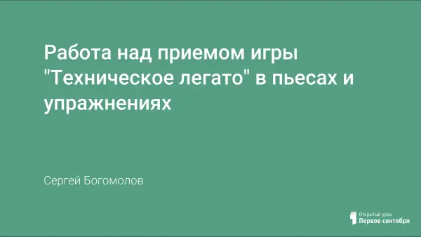 Использование исполнительского приема «техническое легато» обогащает игру на инструменте и вносит новые краски, тем самым, мотивируя обучающегося познавать разнообразие музыкального языка и его выразительность. Строгое соблюдение схемы исполнения данного приема игры с обязательным отдыхом в конце исполнения помогает воспитаннику избежать зажатия рук и почувствовать ощущение удобства во время исполнения.
