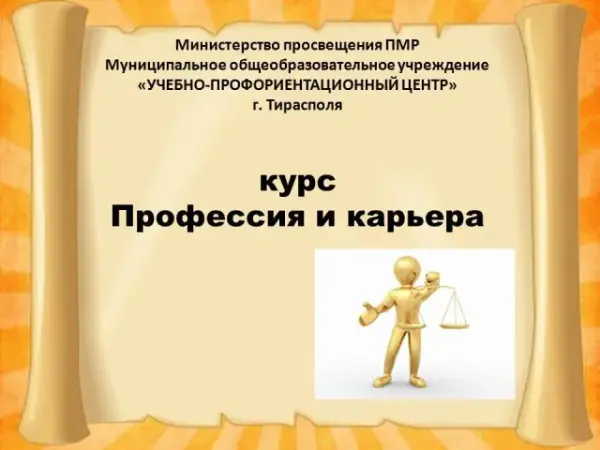 Урок знакомит учащихся с понятиями «профессия», «должность», «карьера» и др., воспитывает интерес к своему профессиональному будущему, способствует правильному выбору профессии, знакомит с основными учебными заведениями ПМР. Презентация №2 «Обзорный урок» вводит учащихся в курс обучения по программе «Профессия и карьера», Презентация №3 «Введение» помогает сделать урок более ярким, эмоциональным, наглядным. А Презентация №1 знакомит учащихся с необычными профессиями.