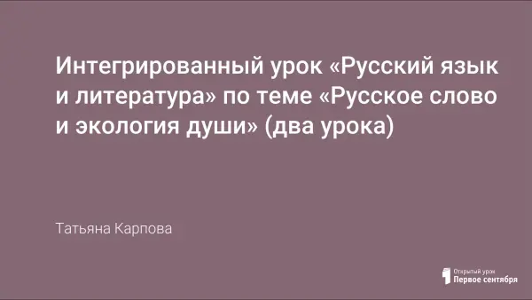Интегрированный урок «Русский язык и литература» по теме «Русское слово и экология души» (два урока)