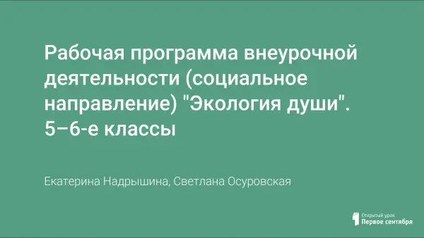 Рабочая программа внеурочной деятельности (социальное направление) "Экология души". 5–6-е классы