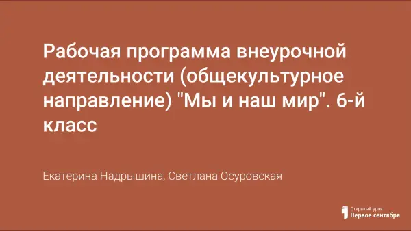 Рабочая программа внеурочной деятельности (общекультурное направление) "Мы и наш мир". 6-й класс