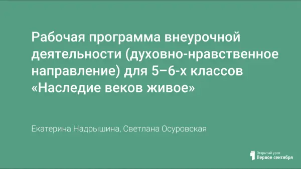 Рабочая программа внеурочной деятельности (духовно-нравственное направление) для 5–6-х классов «Наследие веков живое»