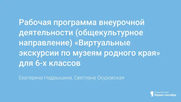 Рабочая программа внеурочной деятельности (общекультурное направление) «Виртуальные экскурсии по музеям родного края» для 6-х классов
