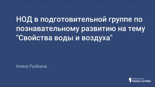 Данная непосредственная образовательная деятельность развивает познавательную активность в процессе экспериментирования, а также расширяет знания о воздухе и воде.