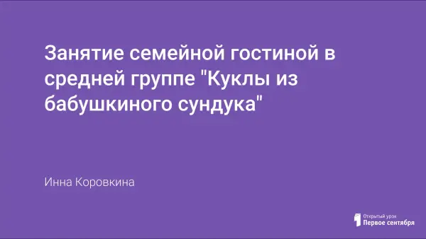 Конспект занятия семейной гостиной в средней группе, на котором внимание детей привлечено к народной игрушке – кукле. Занятие формирует у детей интерес, эмоциональную отзывчивость, чувство радости от встречи с куклами; формирует эстетическое отношение и развивает творческие возможности детей в процессе интеграции различных видов деятельности: словесной, художественной, музыкальной, продуктивно; приобщает к истокам устного народного творчества и декоративно-прикладного искусства.
