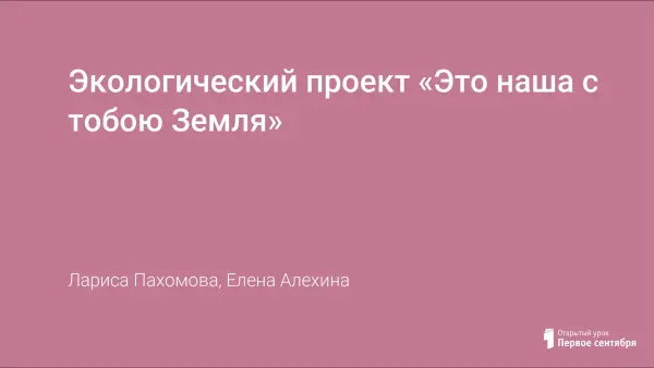 Экологический проект «Это наша с тобой Земля» направлен на популяризацию в молодёжной среде практической природоохранной, эколого-просветительской деятельности, распространение в доступном виде информации о принципах рационального природопользования, о современном состоянии в охране окружающей среды, содействие пропаганде экологически грамотного поведения людей в природе.