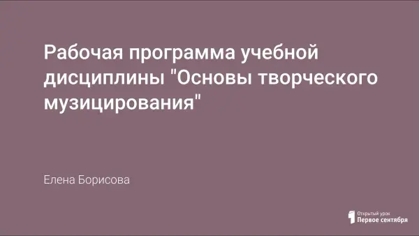 В рамках данной программы читается ознакомительный курс истории творческой практики музицирования, освещаемый с позиции истории импровизации, музыкальной эстетики и музыкальной педагогики. Целесообразность идеи заимствования методов музыкальной педагогики эпохи Ренессанса и Барокко подтверждается в процессе практических занятий импровизацией и выполнение студентами творческих заданий.