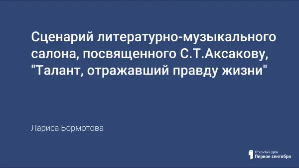 Разговор пойдет об удивительной эпохе первой половине XIX века, в которой жил и творил замечательный русский писатель Сергей Тимофеевич Аксаков. Чародей слова, проникновенный поэт природы, тонкий психолог - таким вошёл в сердце русского читателя автор «Семейной хроники» и «Детских годов Богрова-внука» С.Т.Аксаков. Его произведения дороги нам, как чистый родник поэзии, неиссякаемый источник познания жизни, красоты окружающего нас мира природы.
