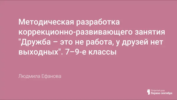 В 13–15 лет подростки имеют уже определенный опыт общения и умения дружить. Но не все могут правильно разобраться в мотивах дружбы, в чем смысл дружбы и что входит в само понятие - настоящий друг. Главная задача взрослых заключается в том, чтобы показать подросткам важность истинных друзей, ценность и необходимость дружбы в жизни человека, учить стремлению понимать друг друга, обучать соблюдения законов дружбы.