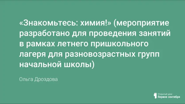Цель занятия: дать ученикам начальной школы первоначальные представления о предмете и методах химии. Задачи: познакомить обучающихся с понятиями «химия», «тело», «вещество», «смесь веществ», а также с основными видами лабораторной посуды и способами разделения смесей.