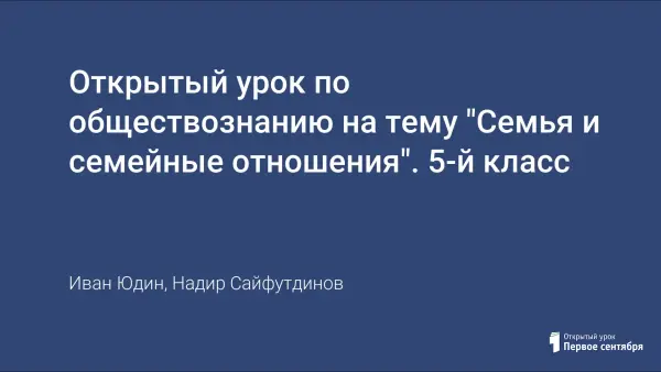 Открытый урок по обществознанию на тему "Семья и семейные отношения". 5-й класс