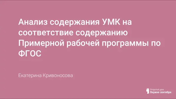 Представлен анализ содержания УМК на соответствие содержанию Примерной рабочей программы по ФГОС.