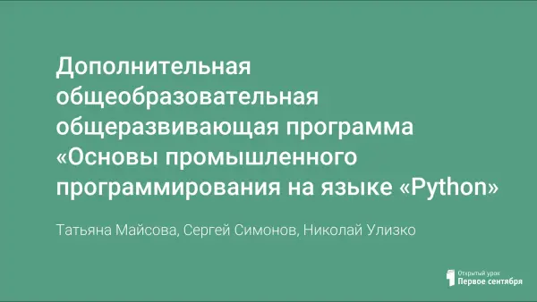 В статье представлена программа технической направленности стартового уровня, рассчитанная на 144 часов в течении 1 года, реализуемая на базе МАОУДО Центр «Диалог» для обучающихся 14–17 лет, целью которой является создание условий для изучения основ промышленного программирования на языке Python, развитие интереса к изучению технических наук и передовых технологий.