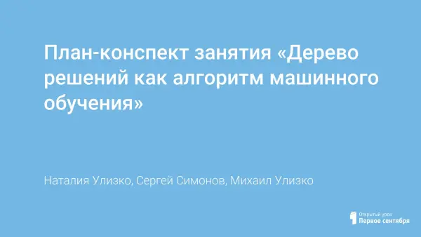 Занятие призвано познакомить обучающихся с алгоритмом машинного обучения «дерево решений» и областью его применения. Материал будет полезен педагогам и обучающимся курса «Искусственный интеллект и машинное обучение». Рекомендованная возрастная категория детей 15–17 лет.