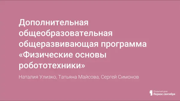 В статье представлена дополнительная общеобразовательная общеразвивающая программа технической направленности стартового уровня, рассчитанная на 60 часов в течении 1 года, реализуемая на базе МАОУДО Центр «Диалог» для обучающихся 11–13 лет. Процесс обучения строится на основе активной работы по конструированию и исследованию, знакомит обучающихся с элементами мехатроники. Цель курса: познакомить обучающихся с основами механики и программирования на примере действующих моделей, используемых в повседневной жизни.