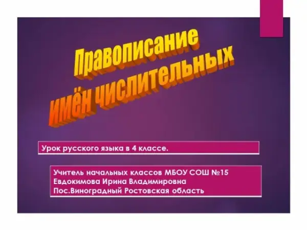 На уроке углубляются имеющиеся знания о числительном, знакомит с правилами написания числительных. Закрепляются знания о числительном как части речи, различении количественных и порядковых числительных, происходит знакомство с понятиями «простое» и «сложное» числительное. Урок учит правильному написанию числительных; развивает аналитическое мышление, произвольное внимание, формирует умение рассуждать, активизирует мыслительную деятельность учащихся.