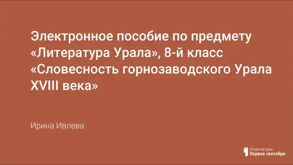 Электронное пособие по предмету «Литература Урала», 8-й класс «Словесность горнозаводского Урала XVIII века»