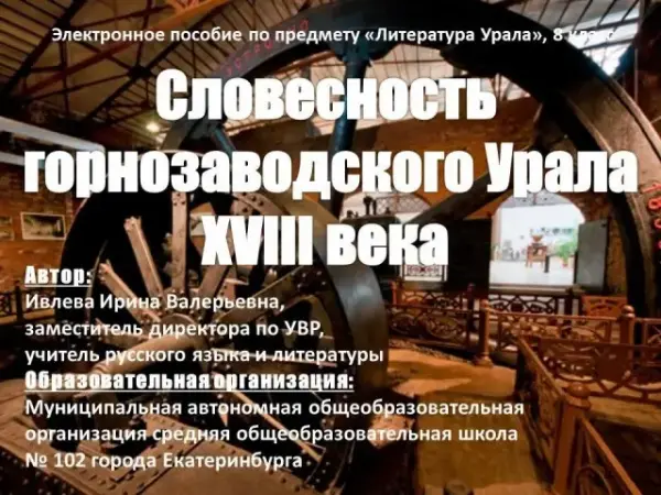 Методическая разработка - электронное пособие «Словесность горнозаводского Урала XVIII века» для учебного предмета «Литература Урала» в 8-х классах. Концепция предмета предполагает формирование чувства сопричастности с историей родного края, принятие ценностей региональной ментальности через знакомство с литературными произведениями. В работе представлено описание электронного пособия, методические основы его использования.