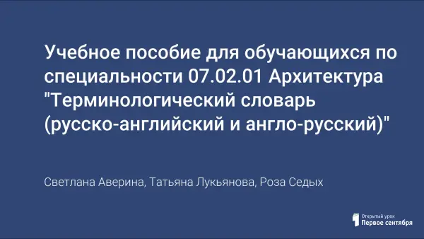 Учебное пособие для обучающихся по специальности 07.02.01 Архитектура "Терминологический словарь (русско-английский и англо-русский)"
