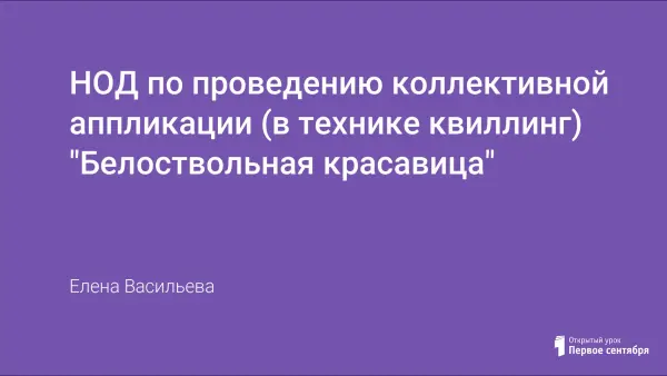 Конспект непосредственной образовательной деятельности по проведению коллективной аппликации в технике квиллинг в подготовительной к школе группе. Цель: развивать внимание, память, мышление, мелкую моторику; воспитывать любовь к природе родного края; воспитывать дружеское отношение друг к другу во время выполнения работы; чувство уважения к чужому труду.