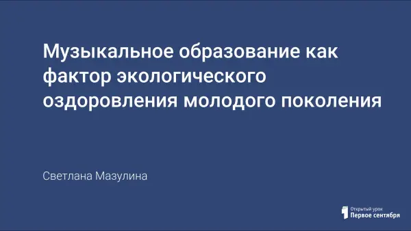 Среди различных видов искусства именно музыка обладает наибольшими возможностями в вопросе формирования экологической культуры общества и его экологического оздоровления. Музыка является тончайшим инструментом воздействия на чувства человека.