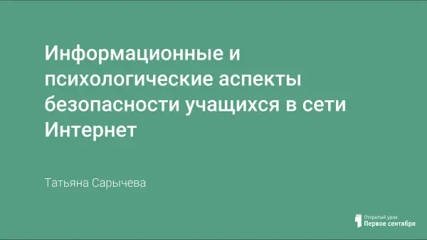 Всё чаще и всё громче мы слышим фразу о том, что интернет, помимо большого подспорья в учебе, помощи в поиске информации или развлечениях таит в себе угрозу, которая стала реальной и очень ощутимой на сегодняшний день. И эту угрозу мы ощущаем, поскольку работаем с детьми, в поле зрения наши дети, мы видим, сколько времени они тратят на гаджеты, сколько внимания они уделяют в соцсетях и это очень тревожная реалия. Нам, и как родителям, и как учителям необходимо обладать информацией о том, что же мы можем сделать для обеспечения информационной безопасности детей, защиты физического, умственного и нравственного развития несовершеннолетних.
